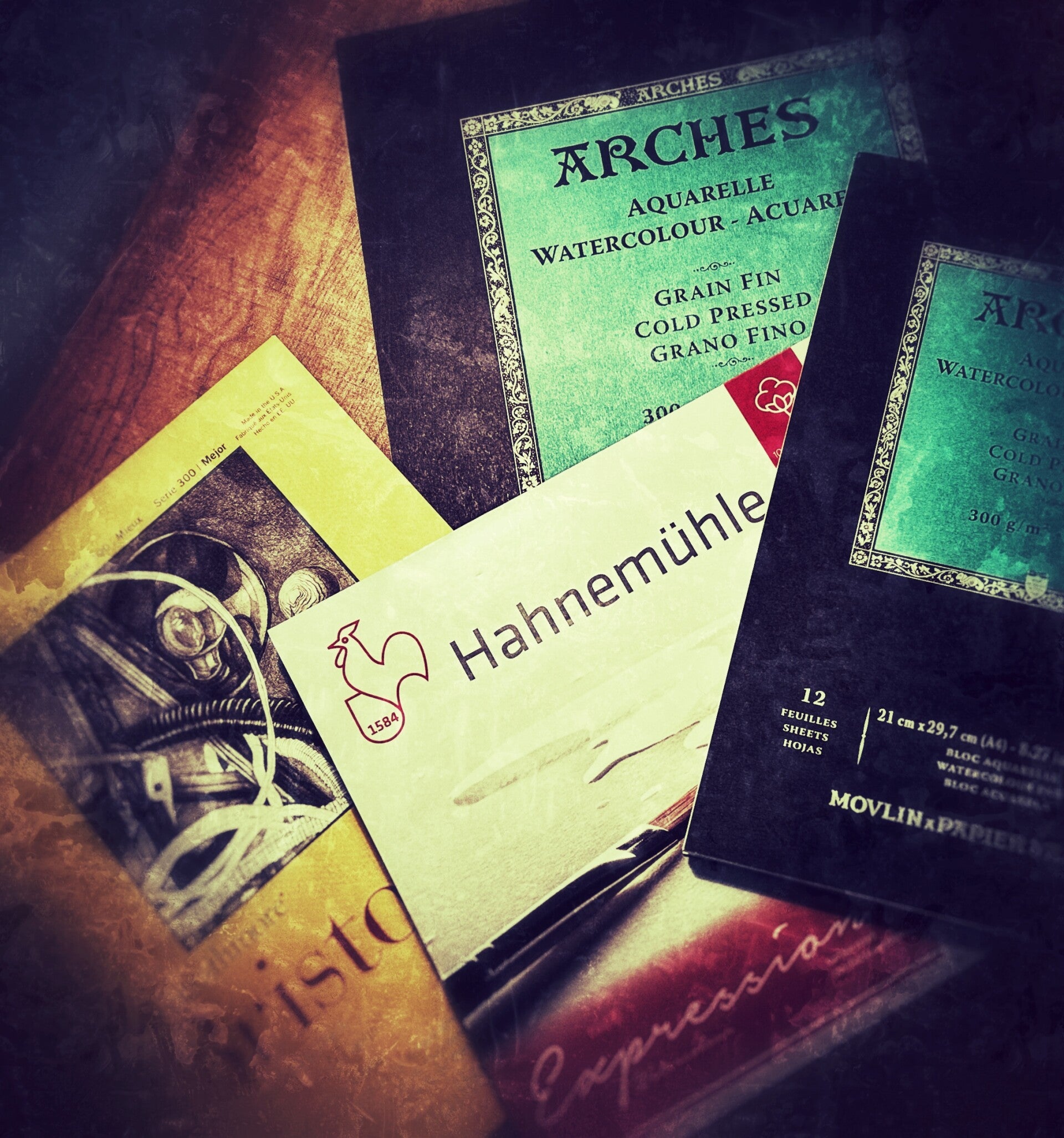 The foundation of any great painting is its surface. I typically use 140lb. / 300g/m² Cold Pressed watercolour paper for my work and I now always lean toward brands such as Arches or Hahnemühle.